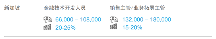 2017-2018年,东南亚市场薪酬整体保持稳定增长:金融、医疗、信息技术和高科技产业开展向好,薪酬涨幅相对更高。从地区看,新加坡薪酬的薪酬涨幅水平相对较低,跳槽涨幅在10-15%。(文中部分数据是北京知名猎头公司PA真人视讯国际专家顾问的分析预测,供企业HR和猎头参考)